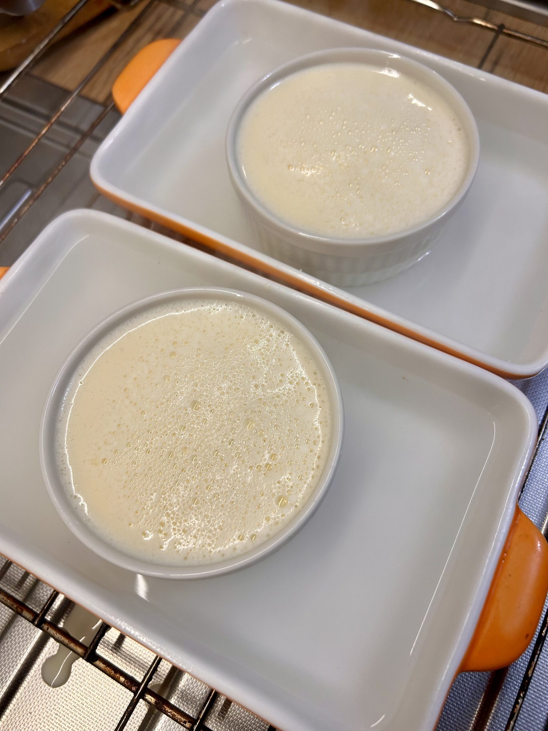 Gotową masę wlewam do specjalnych kokilek żaroodpornych. Ustawiam je w głębszym naczyniu wypełnionym wrzątkiem.