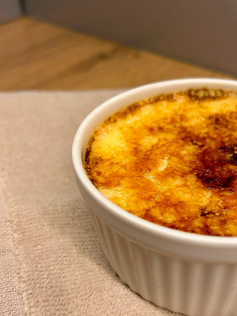 Crème brûlée to delikatny, waniliowy deser na bazie słodkiej śmietanki z chrupiącą na górze warstwą palonego cukru.
