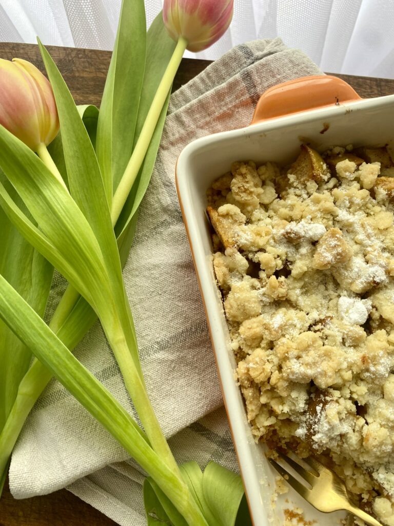 Sezonowe owoce pod kruszonką to ciepły, aromatyczny deser z miękkimi, rozpływającymi się owocami przykrytymi maślaną, złocistą kruszonką. Prosty, domowy i niezwykle komfortowy — idealny na każdą porę roku.