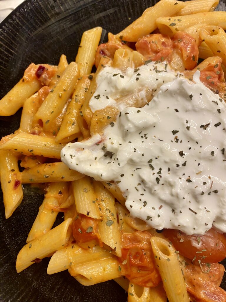 Banalnie prosty w przygotowaniu makaron, który razem z burratą tworzą przepyszny obiad lub kolację.