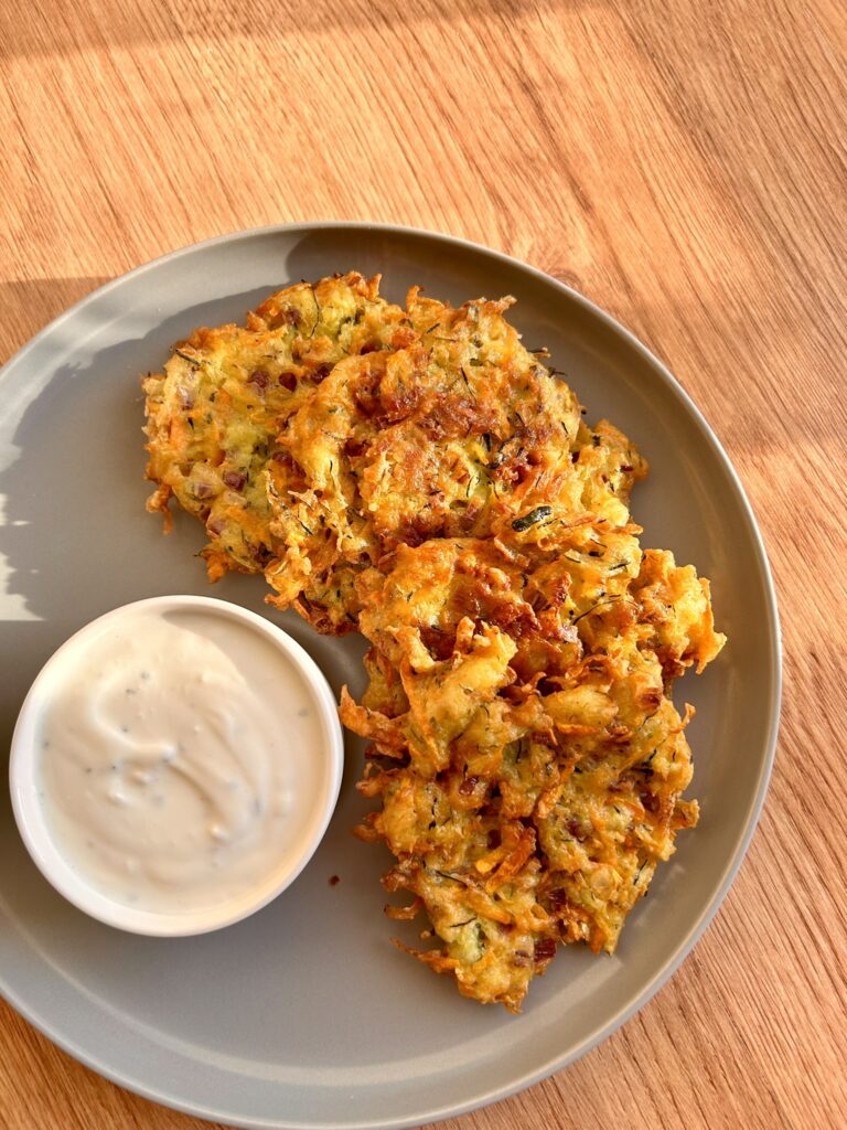 Chrupiące placki z cukinią i marchewką sprawdzą się idealnie jako kolacja. W połączeniu z sosem czosnkowym tworzą genialną całość.