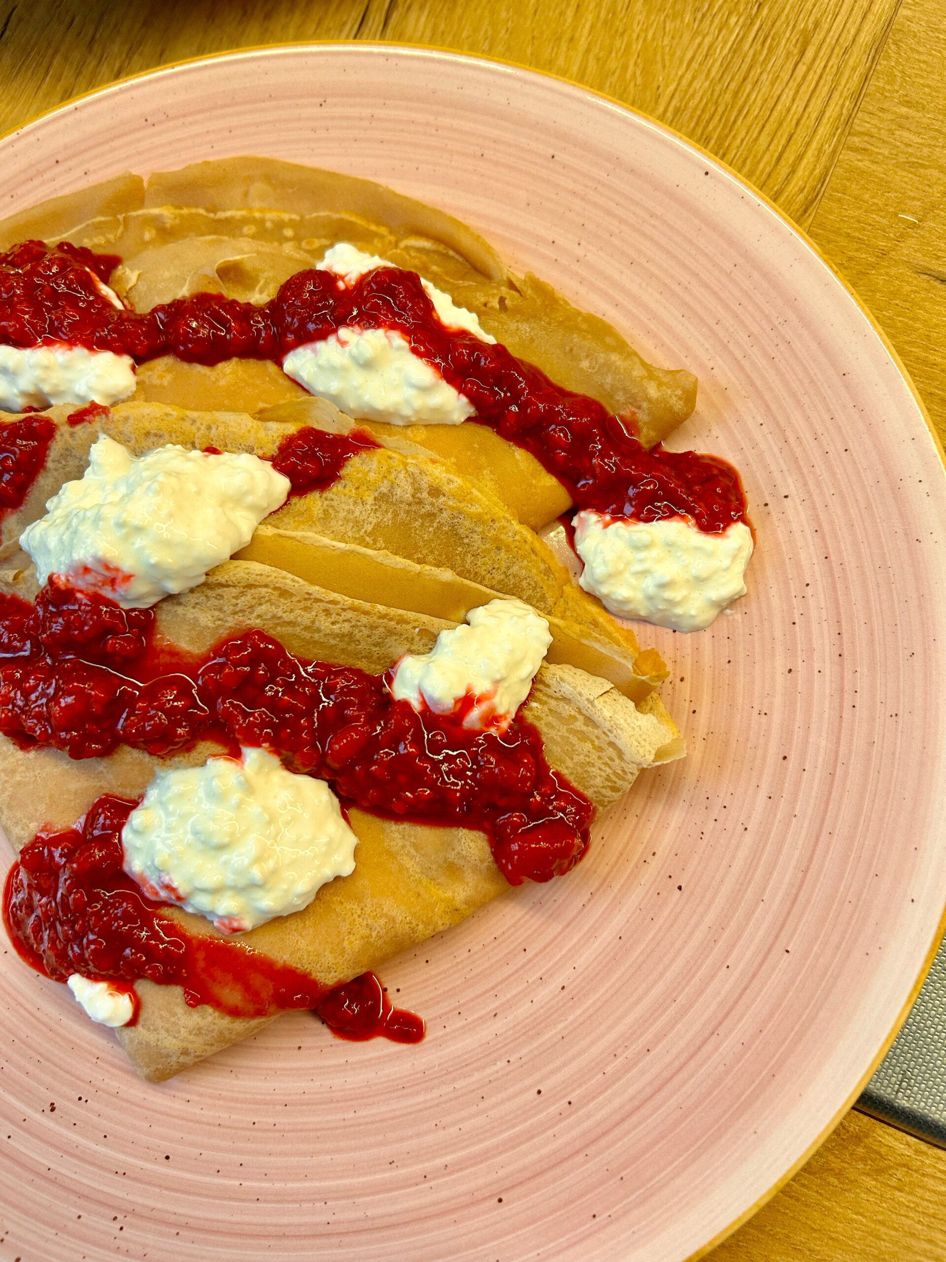 NALEŚNIKI Z TWAROŻKIEM GRANI I MALINAMI